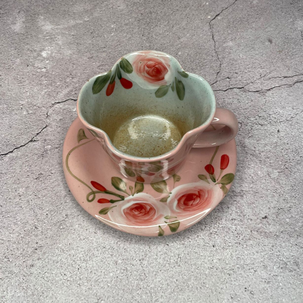 A desert rose teacup and saucer set