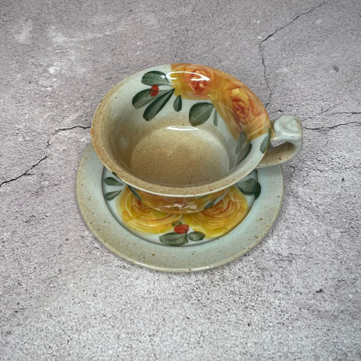 This is a hand-painted Vintage royal Albert Tea Cup and Saucer in the Tea rose yellow glaze pattern.