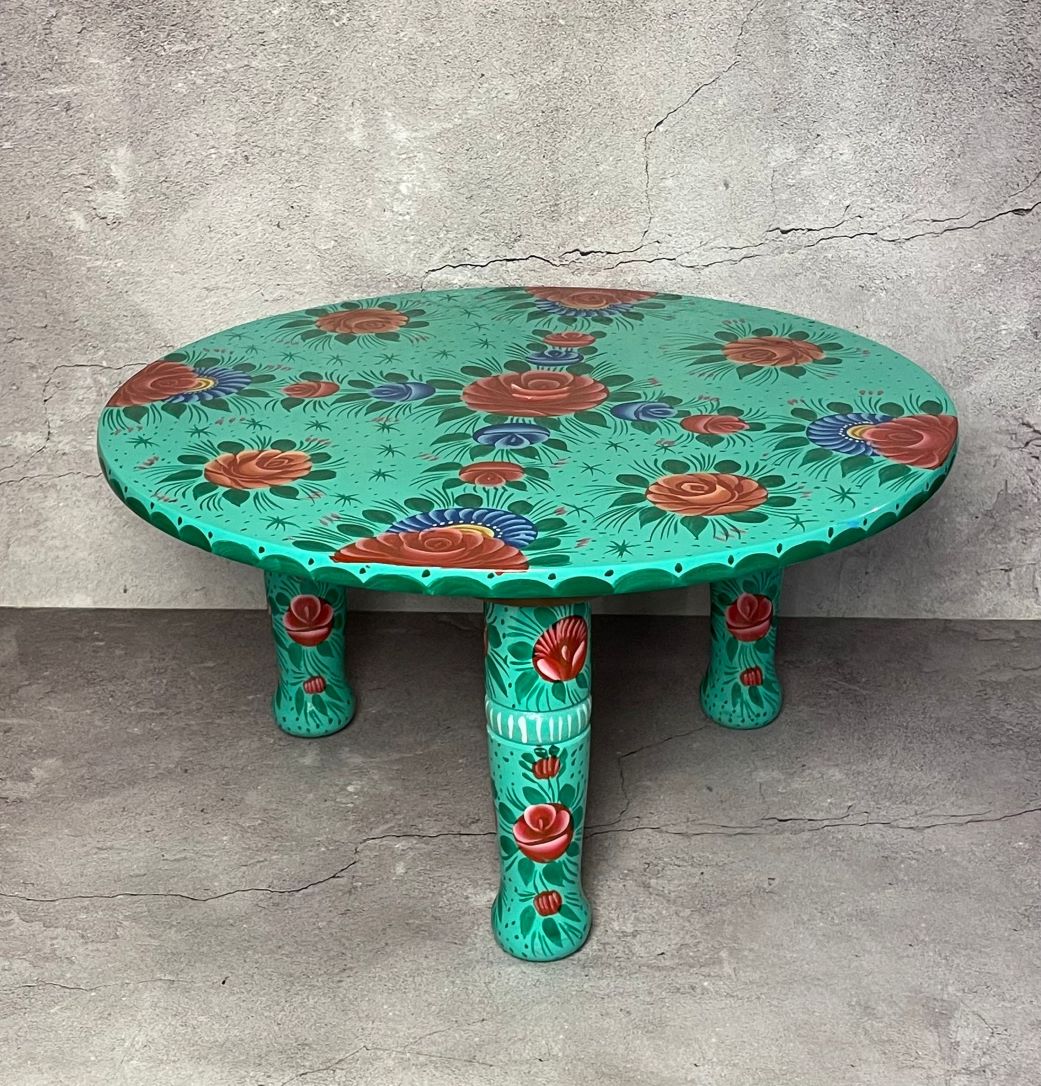 Floral Hand-Painted Wooden Small Table Green)