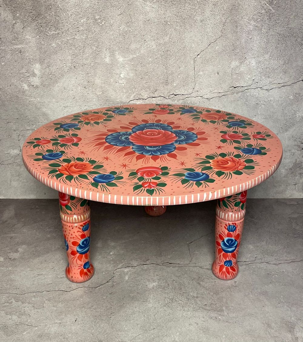 Floral Hand-Painted Wooden Small Table (Pink)