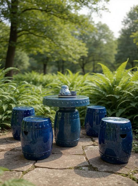 Ceramic Table and Stool Set on Ocean Blue